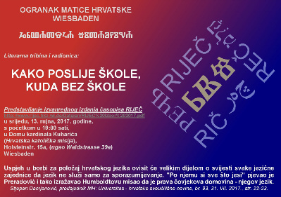 Vidi posebno izdanje RIJEČI za 2017. godinu