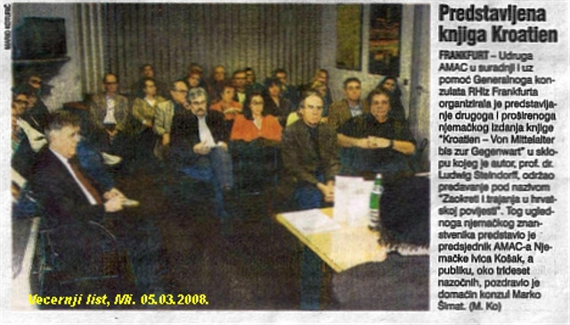 Predstavljanje 1. Izdanja u Konzulatu RH u Frankfurtu, 2008. Godine